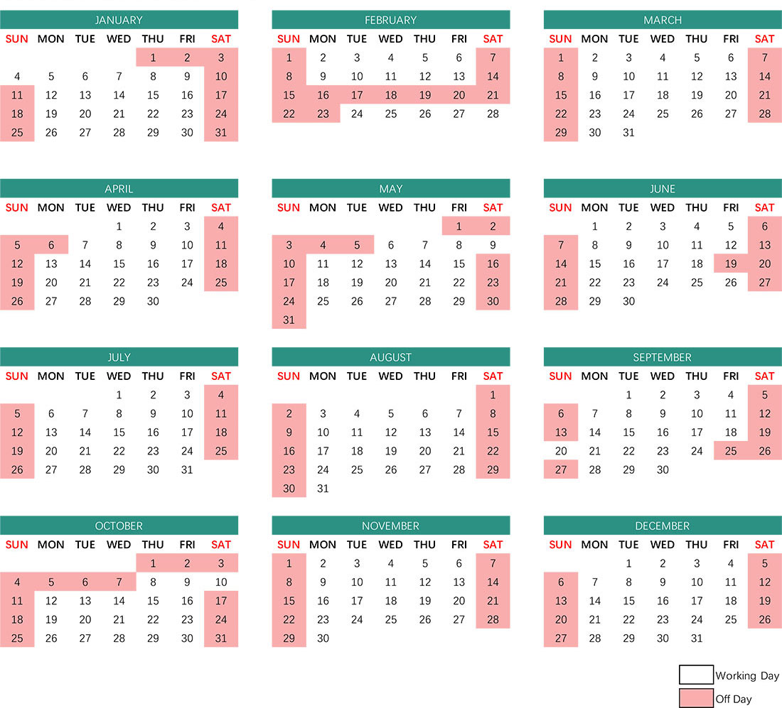 * For the convenience of our customers, please refer to our company's 2026 work calendar as follows.